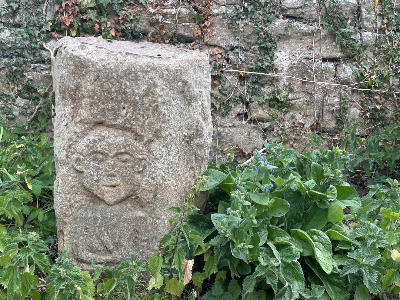 Have a look at his sharp chin, day dreamy, lentoid eyes and wry little smile. What d'you think he's thinking? Whatever it is, it's set in stone! Sandstone to be precise and this isn't some twee garden folly from Dobbies but is believed to be of Romano-British origin. That means his happy little face has been a feature in my county since the 2nd or 3rd century. As my dad would say, “he's as old as his tongue, but a little bit older than his teeth”.