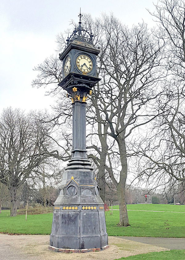 The tall memorial clock was gifted to the people circa 1900 by Thomas Sanderson, who started the clock on 28th August 1900, and two years later, he paid for a striking mechanism. Unfortunately, it no longer appears to work. It is made partly from cast iron, and it may have been painted the fashionable green of the time. Have a look at the ornate detail.