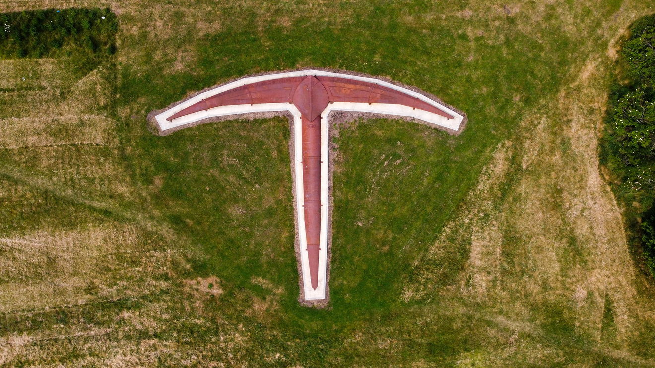 A steel sculpture in the shape of a giant pickaxe in Jarrow, created as a memorial to the town’s mining heritage and the communities who worked in the pits.