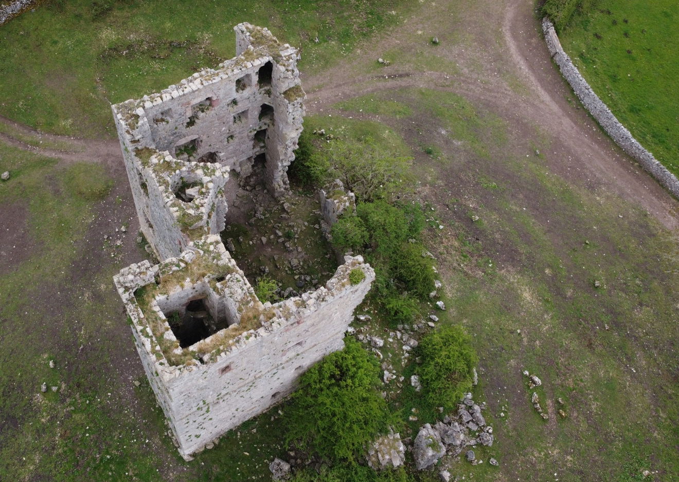 The tower was damaged in a fire in 1602 and after being repaired and modernised, was in use for another 200 years. It was damaged again during a storm in 1884 and the South-west wall collapsed, rendering it uninhabitable.