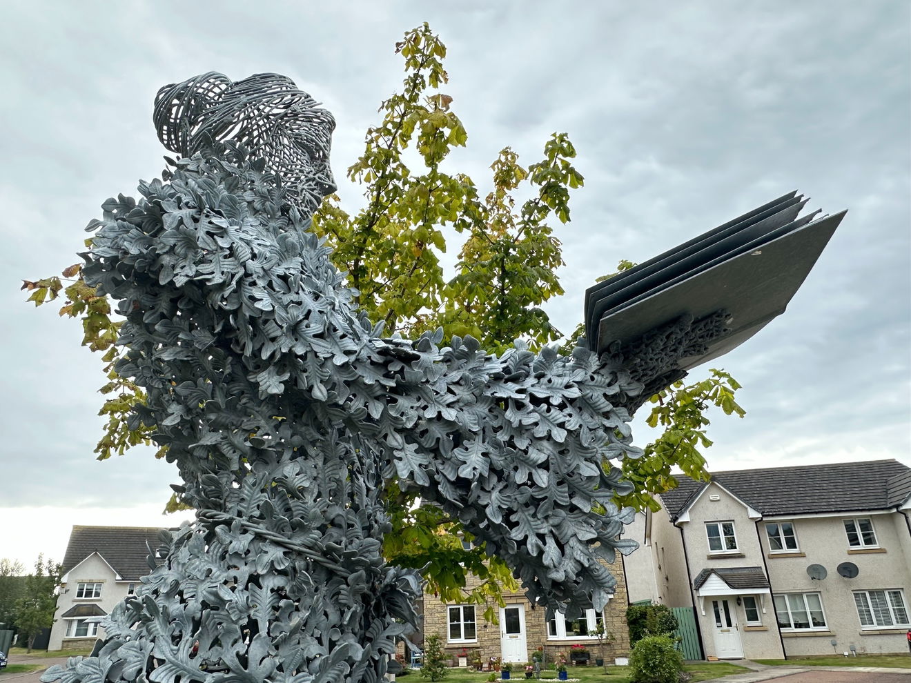 Imagine parking your car on the drive with a rear-view mirror of a sculpture by world renowned artist Andy Scott, who, a little further up the road, made The Kelpies, and a little further down the road, the Dunbear.Dunbear