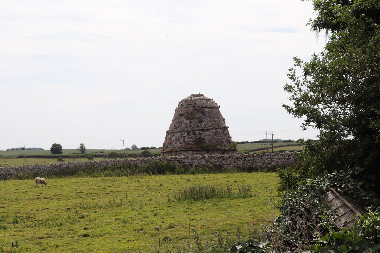 This one is likely to be 16th century as it's a classic beehive style, before the designs got a bit fancier in the 17th and 18th centuries. The dovecote was built from rubble masonry with walls approximately 1.2 meters thick at the base, 5.5 meters high with a diameter of 6.7 meters. Inside, there are roughly 250 nesting boxes where the birds would roost. While the original design was largely windowless to keep the birds secure, three windows were added to the south side in later years.