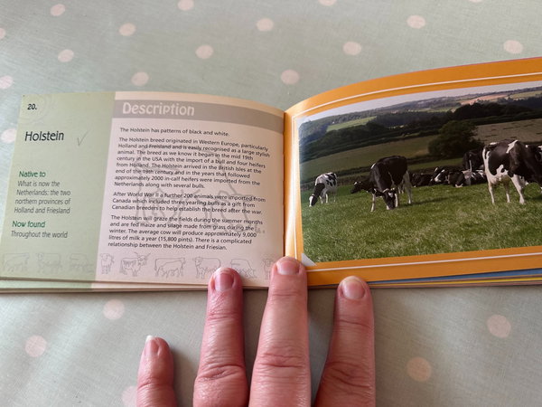Chris has a bonny mix of Holsteins, Fresians and some teeny Jersey cows which produce that lovely creamy high butter fat milk, as well as Normandie with their beautiful red coats. I know my cows! I've a book for everything!