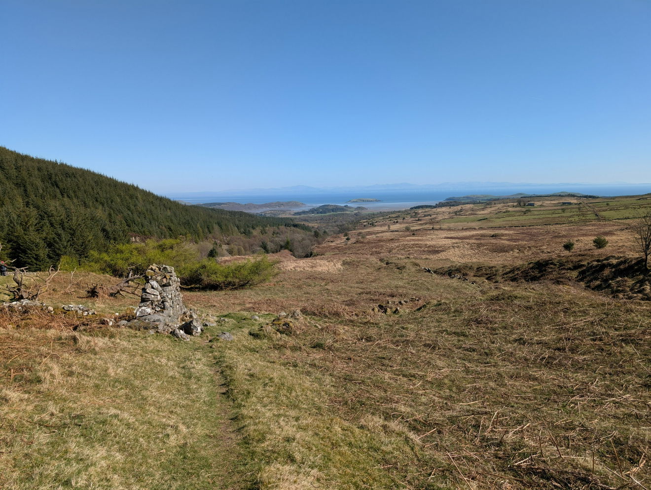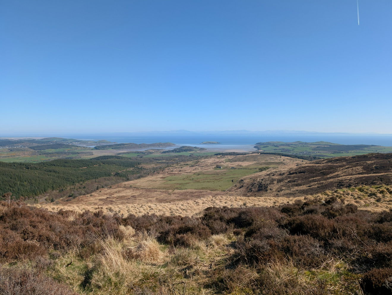 The views to the north west are over towards the Galloway Forest. Whilst to the south east views are over the Solway Firth.
