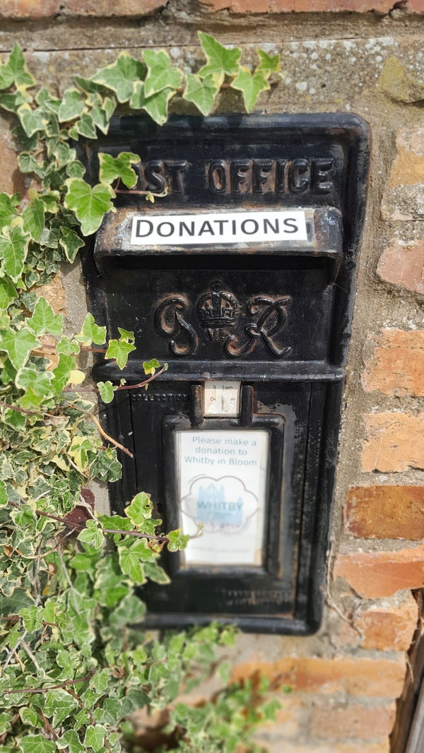 Let's look at the garden. The black letter box appears authentic and features the royal cypher of George V (1865-1936), who ascended to the throne in 1910. I guess it is black, so that people do not pop their postcards, but a few coins as a donation in the box.