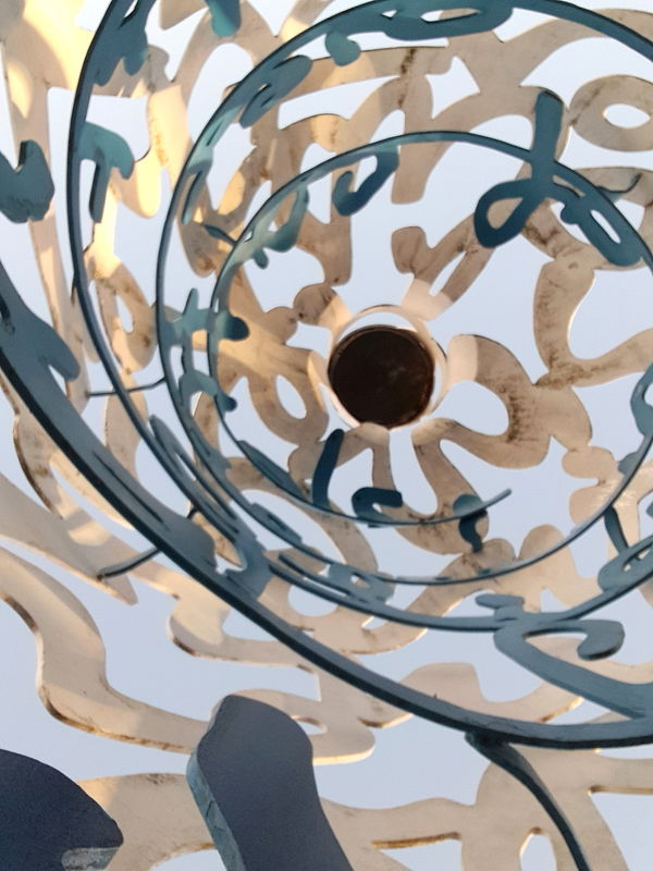 The sculpture is positioned on a slant, to appear as if it had been left stuck in the sand by a receding wave - a giant message in a bottle to local people and the wider world.