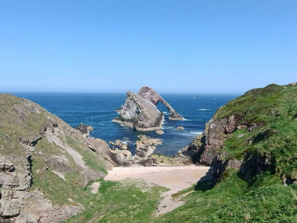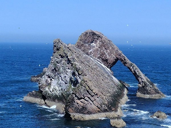 A 15 meter high uniquely shaped natural sea arch near Portknockie.