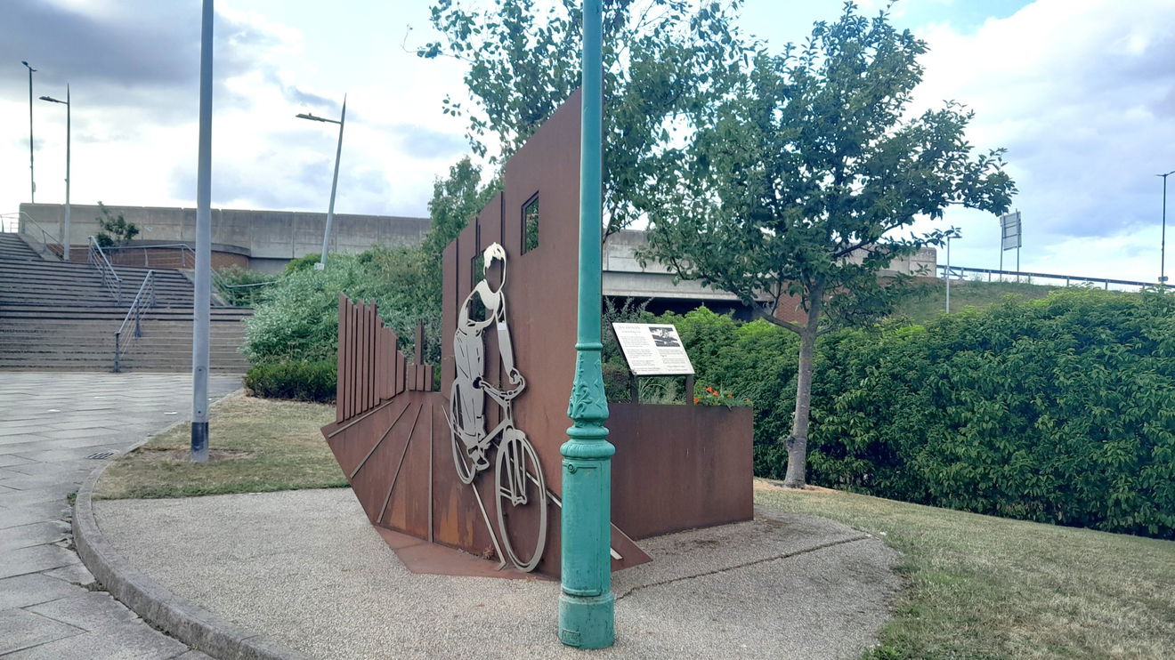 Boy and Bicycle was erected in 2018, the creator was Steven Wilkie, and the fabricator was Bob Hollywood (born 1971). The budget was not enough for the original idea that an Alien monster would draw in fans and photographic opportunities. The modest Boy and Bicycle reflects both brothers' contributions to the film industry.