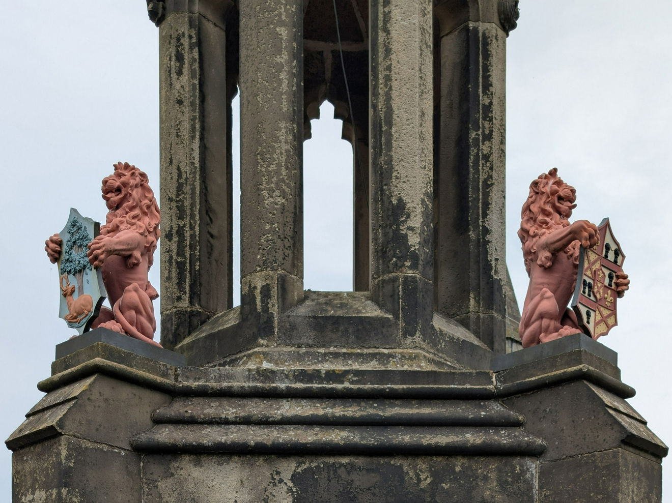 After much deliberation, it was decided to decorate the fountain with lions holding shields containing the Coat of Arms of both the Bruce's and the Falkland Royal Burgh.