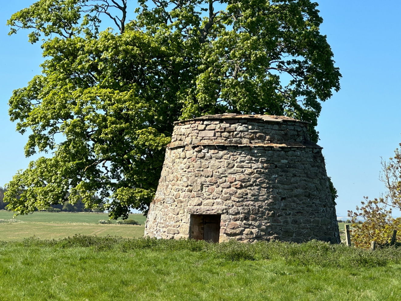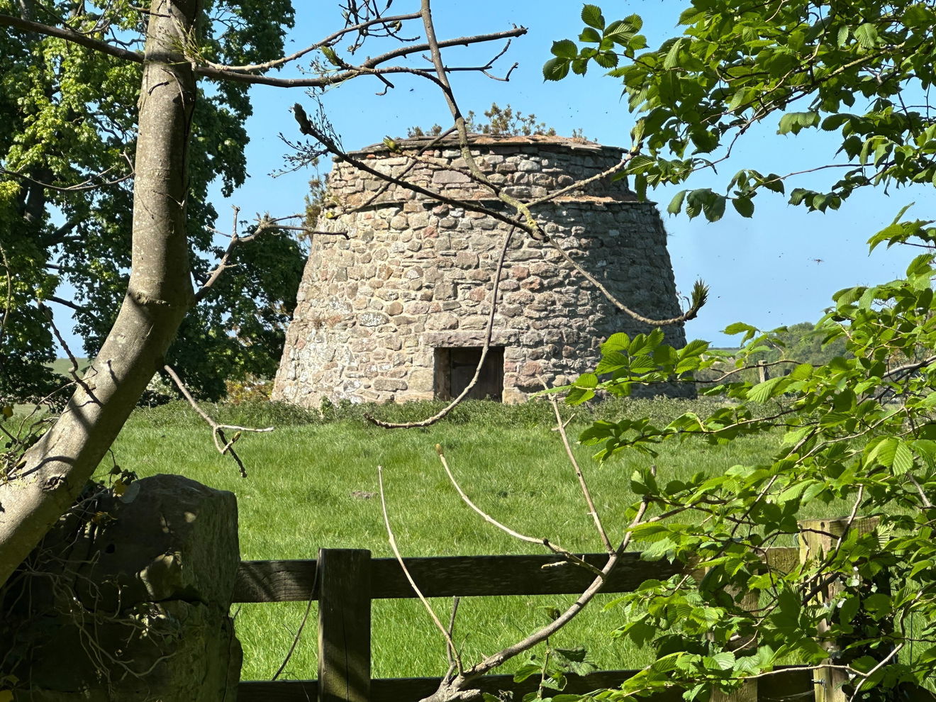 You were seen as a bit posh if you had a dovecote. They were a symbol of status and high standing. This one is tun bellied. In Scotland, just fifteen miles up the way, this style is known as the nicer sounding Beehive Doocot. Tun Bellied sounds like a man who's had too many pints!