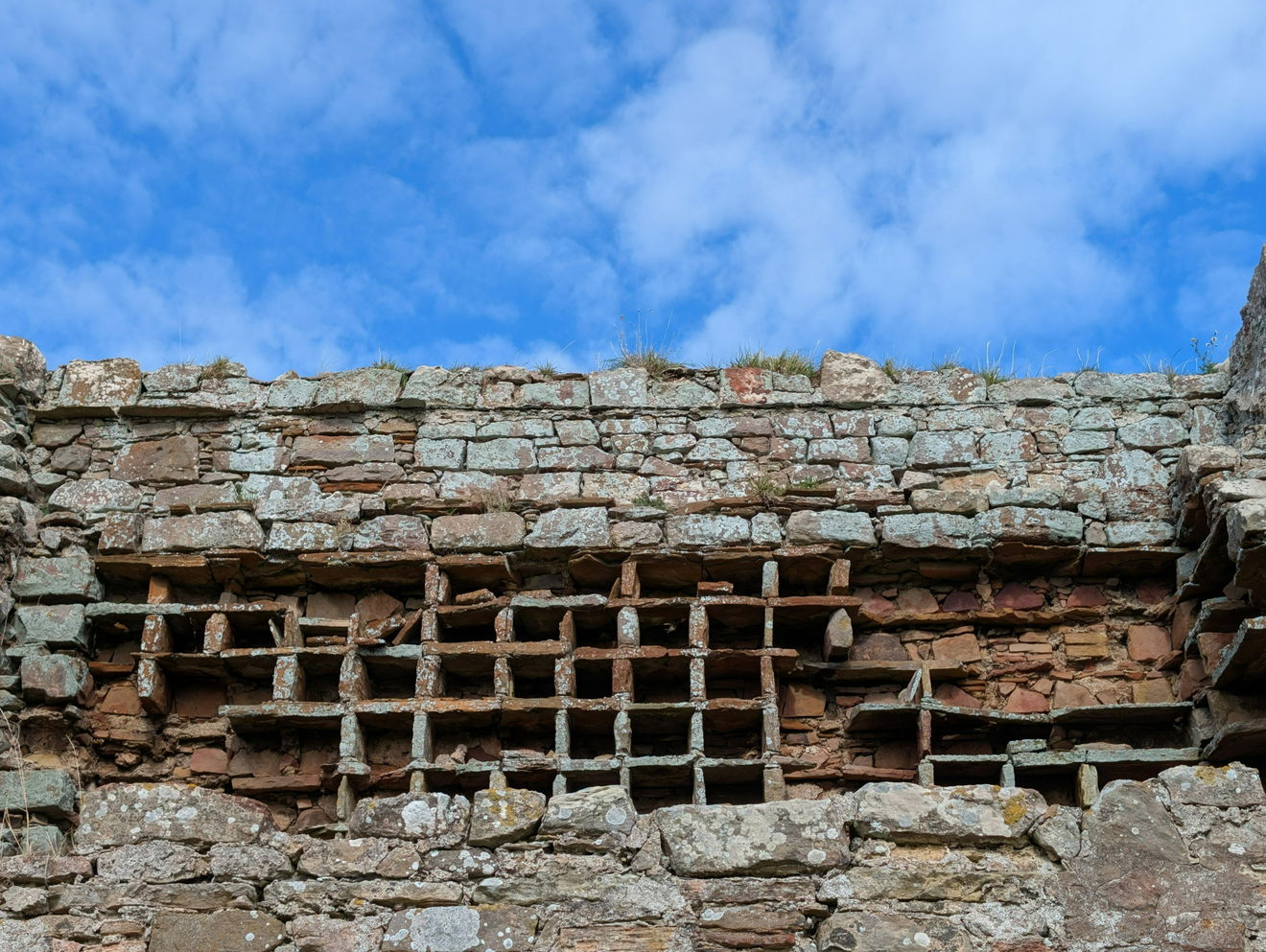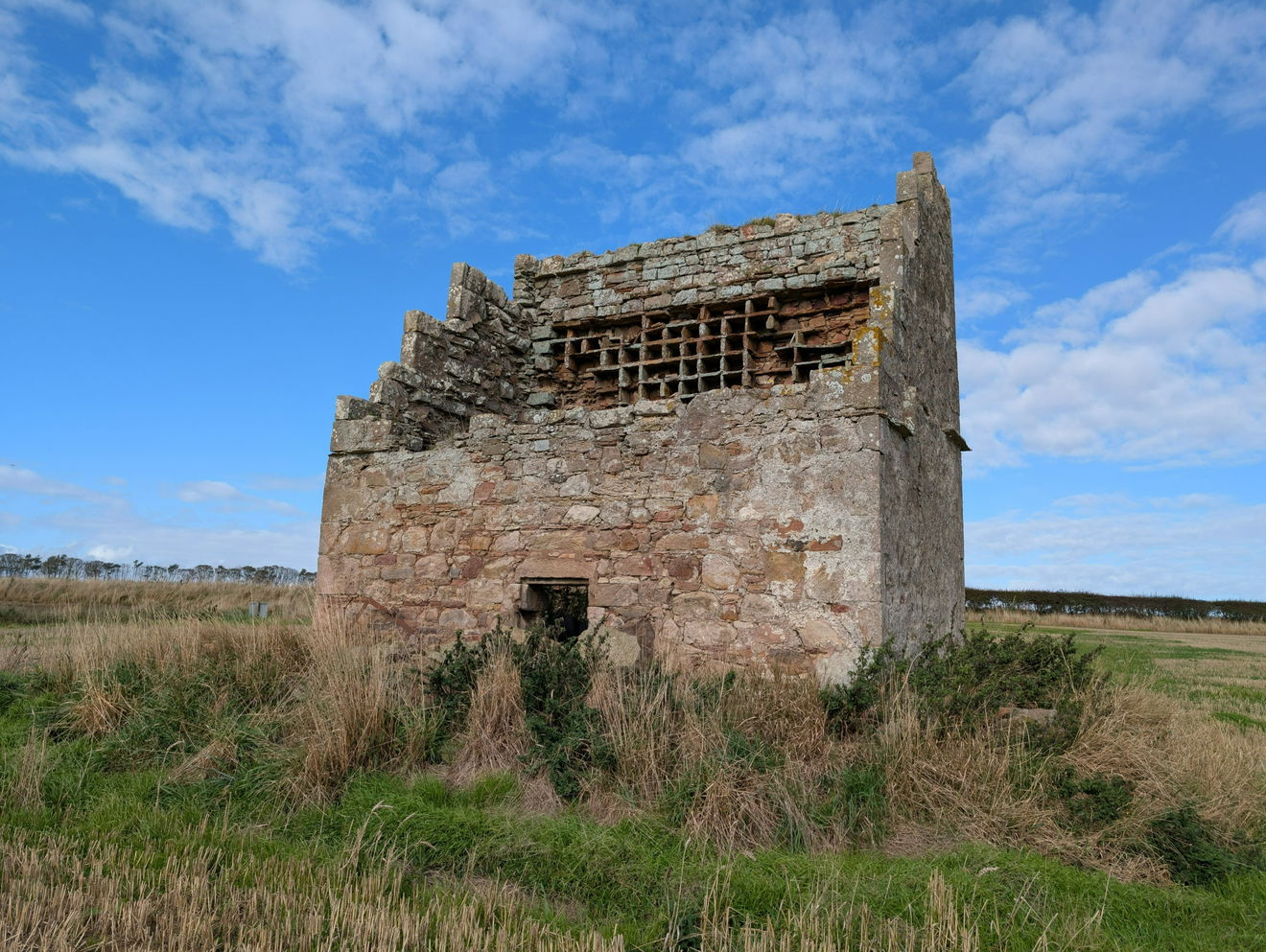 The Doocot dates back to around 1739, it has a single chamber with crow stepped gable walls and a single front entrance. Although the roof has long gone and the nest boxes are damaged, but you can still imagine this Doocot being full of pigeons, providing eggs and meat to local people.