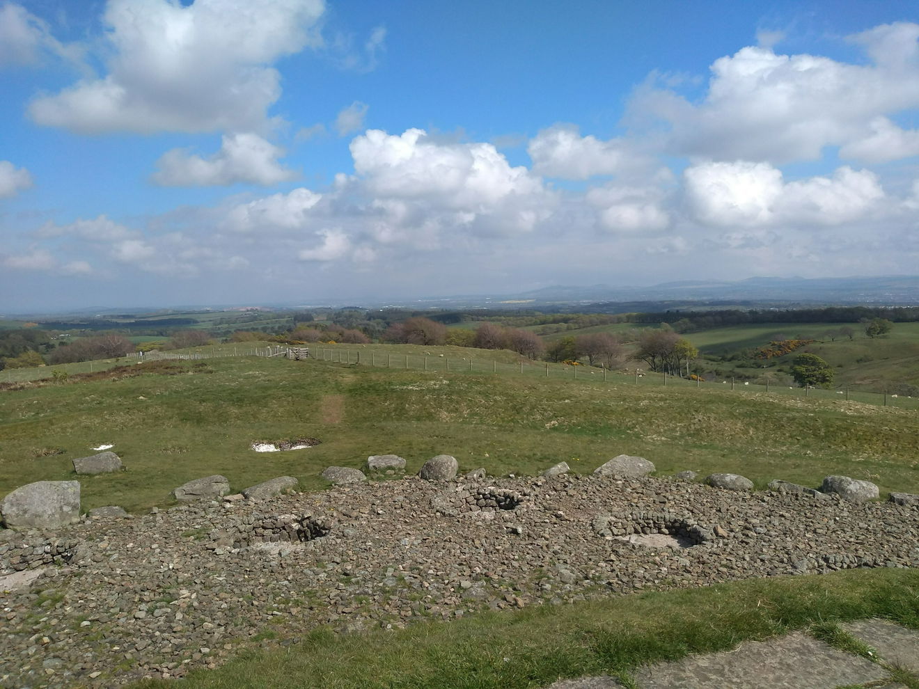 Cairnpapple Hill has been developed over thousands of years and was chosen for its prominent position in the Scottish Lowlands standing at 312m.
