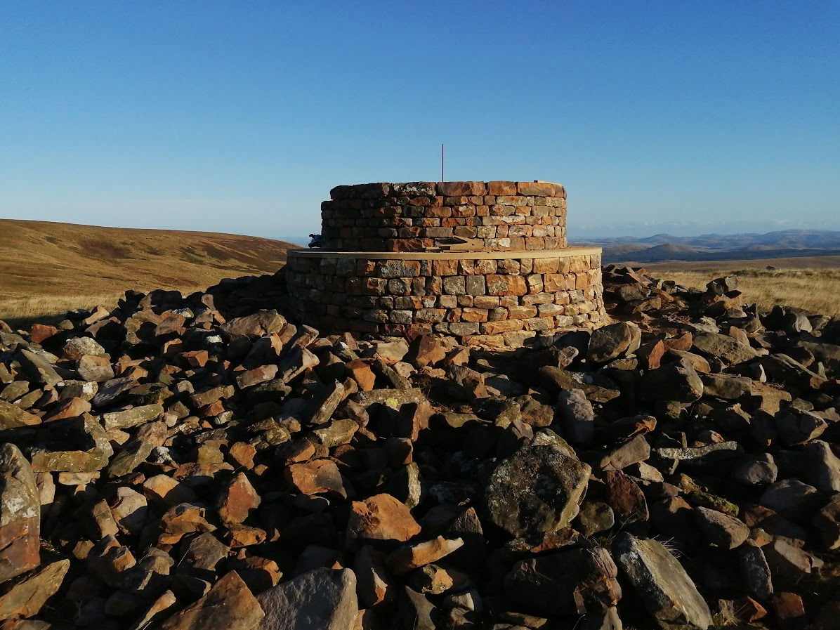 I was asked by the Northumberland Wildlife Trust to rebuild the cairn on Carter Pike as a part of a larger scheme of habitat restoration on their Whitelee Moor National Nature Reserve (the moor is a fine example of a rare upland blanket bog, for them's in the know). The works were funded by the fantastic Revitalising Redesdale project.
