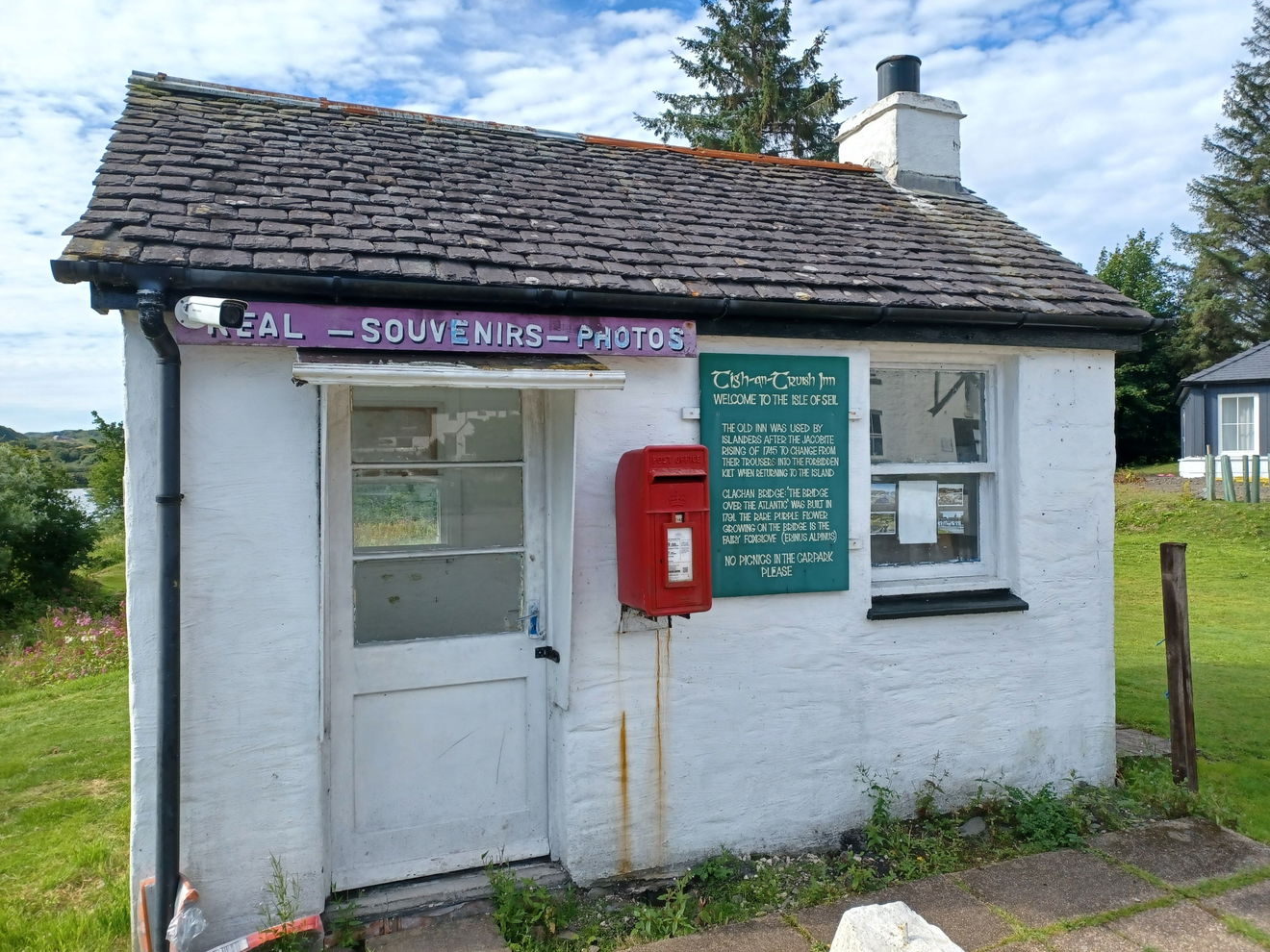 Just next to the bridge stands the historic Tigh an Truish Inn, Gaelic for “The House of the Trousers”. An odd name but one that tells of its link to the Jacobite Risings and their aftermath. In 1746 the Jacobite forces of Bonny Prince Charlie were defeated at Culloden and the British government introduced the “Dress Act” which banned the wearing of kilts and tartan, in an effort to supress Gaelic culture. Islanders who were travelling to the mainland would stop at Tigh an Truish to change out of their kilts into trousers to avoid arrest. They would then change back on their return.