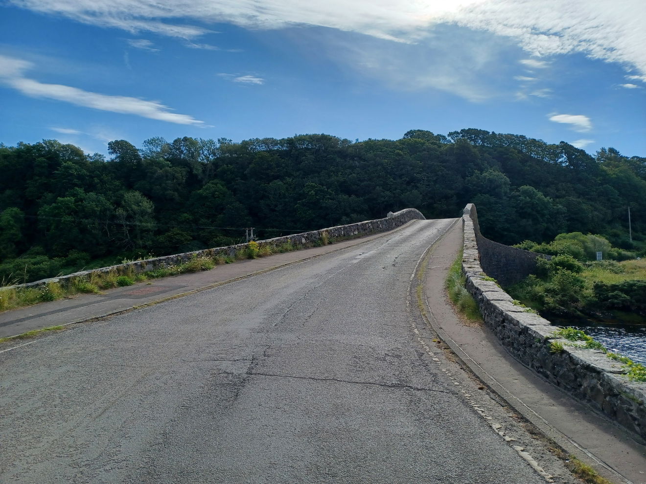 While some may think this is a bit tenuous, technically the bridge does cross a narrow sliver of the Atlantic Ocean. The bridge itself is a Category A listed structure, meaning it is of national or international importance, and is of a simple design. A single, high, segmented arch spans the inlet giving it a distinctive hump backed look, which was needed to allow small boats to pass beneath it at high tide, an important consideration for maritime traffic.
