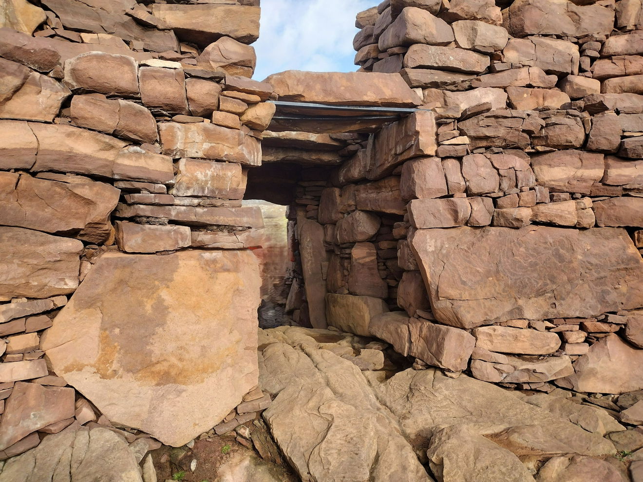 There would have been steps inside the walls to at least one further level, where more chambers/rooms would have existed. The dry sandstone walls would have required regular maintenance and have been repaired and altered.
