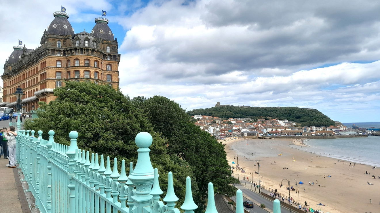 There are some super views, there's the North Bay and Scarborough Castle, the Grand Hotel, and the Blue painted hollow gets your attention, it is the subway and toilets.