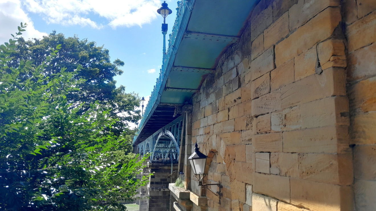 It is worth taking the full tour of walking over and under the Bridge. You should notice that the St Nicholas Cliff end of the bridge splayed out, and looking underneath, you can see the iron workings.