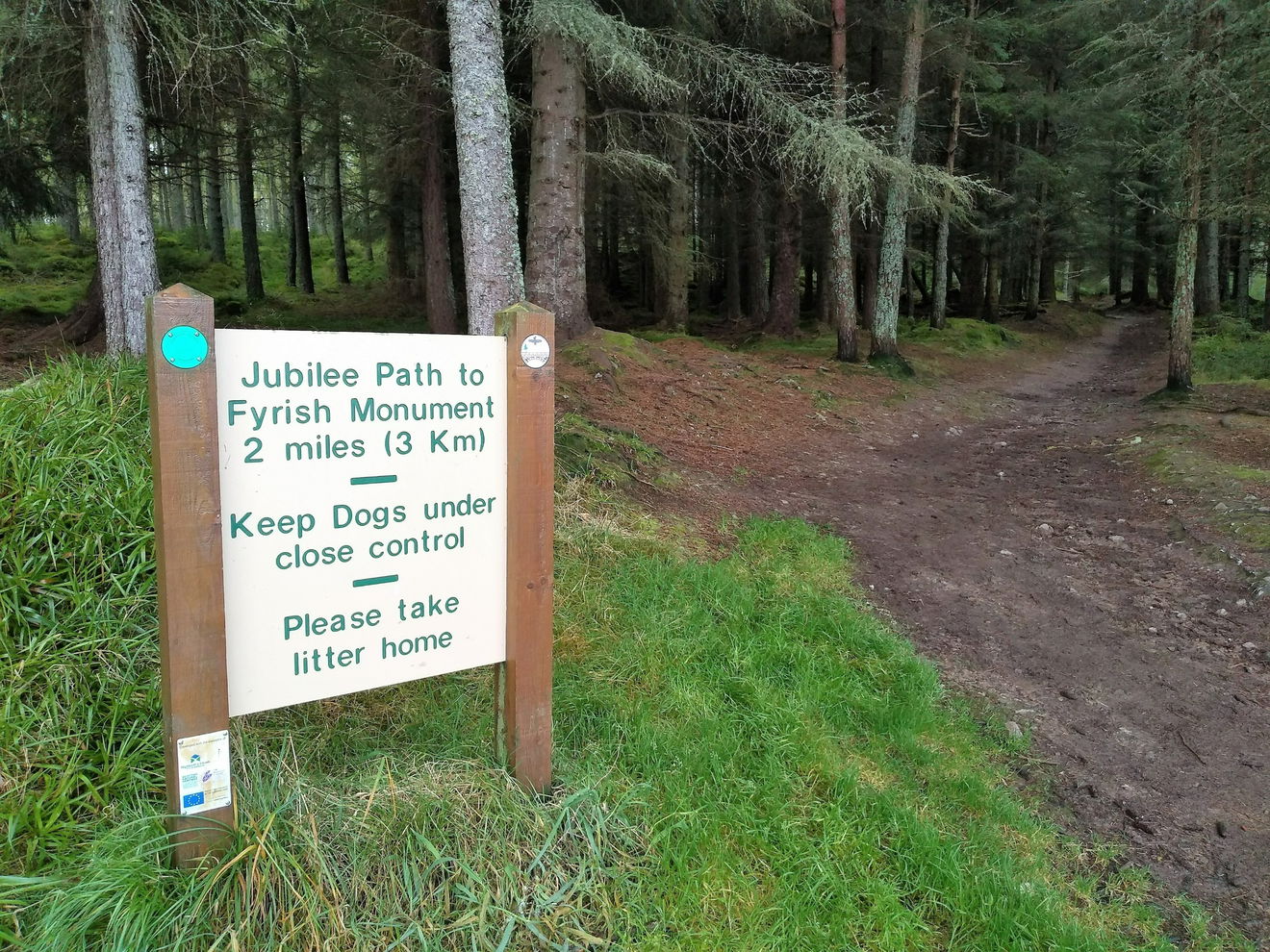 From Novar Estate car park follow the Jubilee Path sign into the woods. Follow the path through the woods as you make your way to the Fyrish Monument.