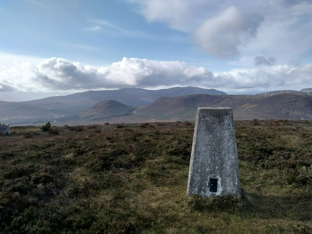 This is the Cnoc Ceislein trig point (523m) sitting on a hill to the north west of the Fyrish Monument near Dingwall.