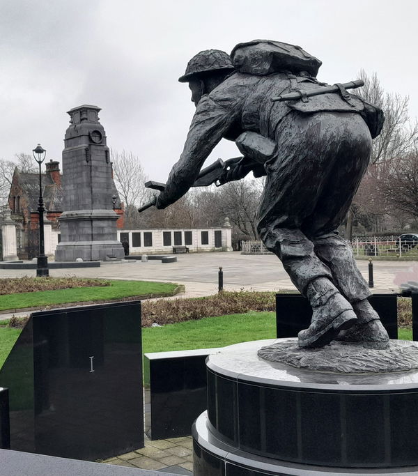 The statue was created by Brian Alabaster (born 1956) and is cast in bronze, is a tad larger than life, which reflects this man's persona. It is worth reading up on CSM Hollis's remarkable bravery and the worthy recipient of the Victoria Cross.