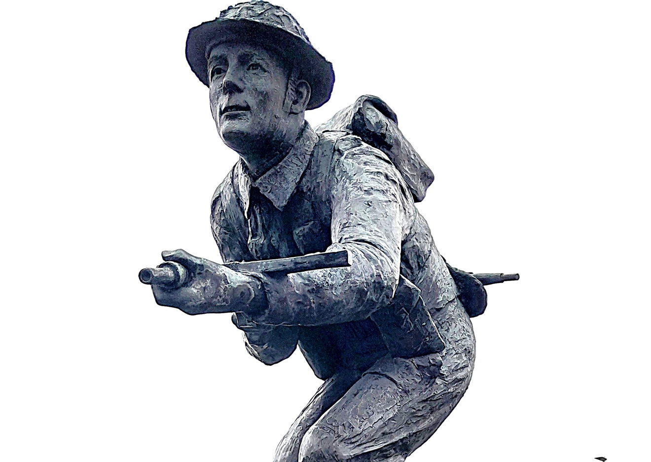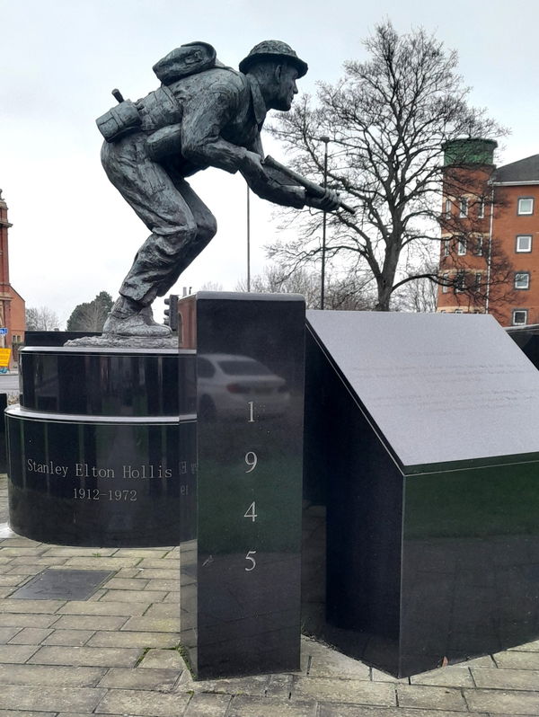 On a winter visit to the Dorman Museum in Middlesbrough, the first thing that caught our eye was a statue of Company Sergeant Major Stanley Elton Hollis (1912 to 1972). It stands outside the museum and depicts CSM Hollis in a storming pose, with his STEN submachine gun.