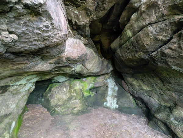 The cave measure approximately 8m by 7m and is around 5m high. Evidence of 2nd century Roman Iron Age occupation have been found in the cave, as well as being used by Christians as a chapel or hermitage. The walls are carved with a series of crosses and what is thought to be representations of four legged animals, dating to about 800AD to 1000AD.