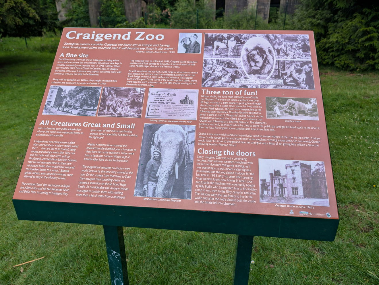 In 1949, Andrew Wilson a Glasgow businessman and his zoologist son, William, bought part of Craigend Estate from the Buchanan family and opened a zoo at Craigend Castle and Stables.