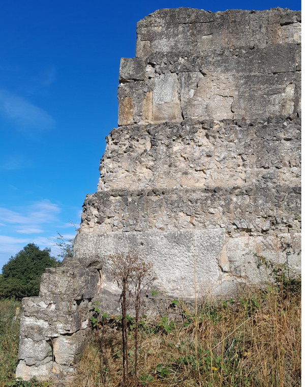 When built It was taller with a roof. Archaeological Building Recording (OASIS ID: archaeoe1-76298) states it would have an outer façade which has now come adrift.