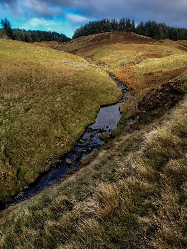 Davidson's Linn is a cascade on the Usway Burn which gets its source from lots of little burns high up on Cairn Hill including Shedding Syke, Coldwell Strand, Davidson's Burn and my favourite Buttroads Sike!