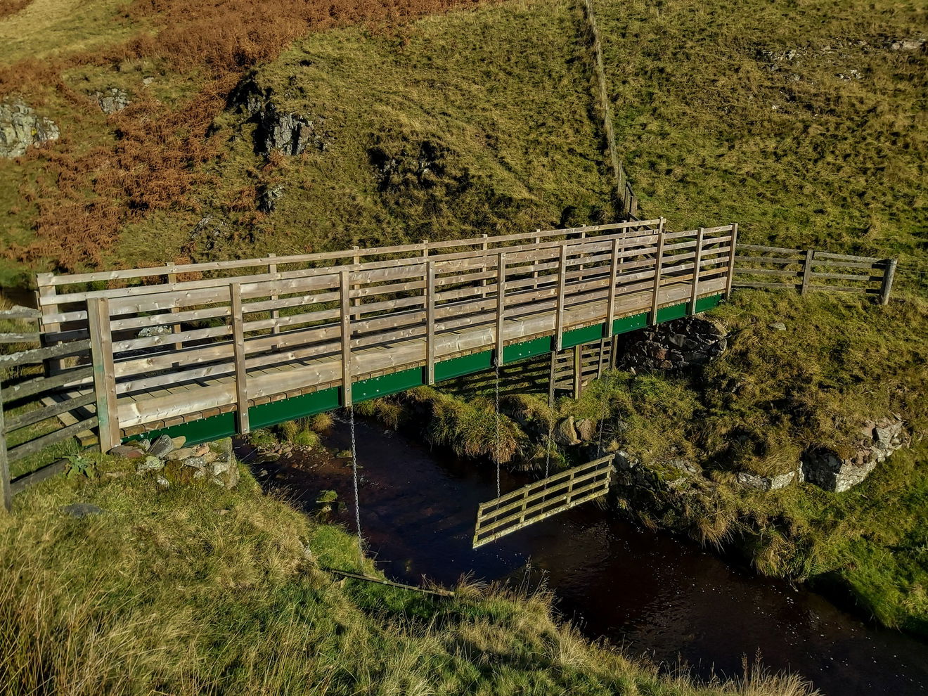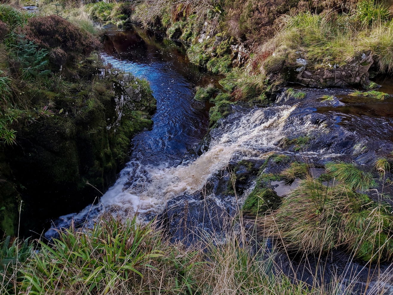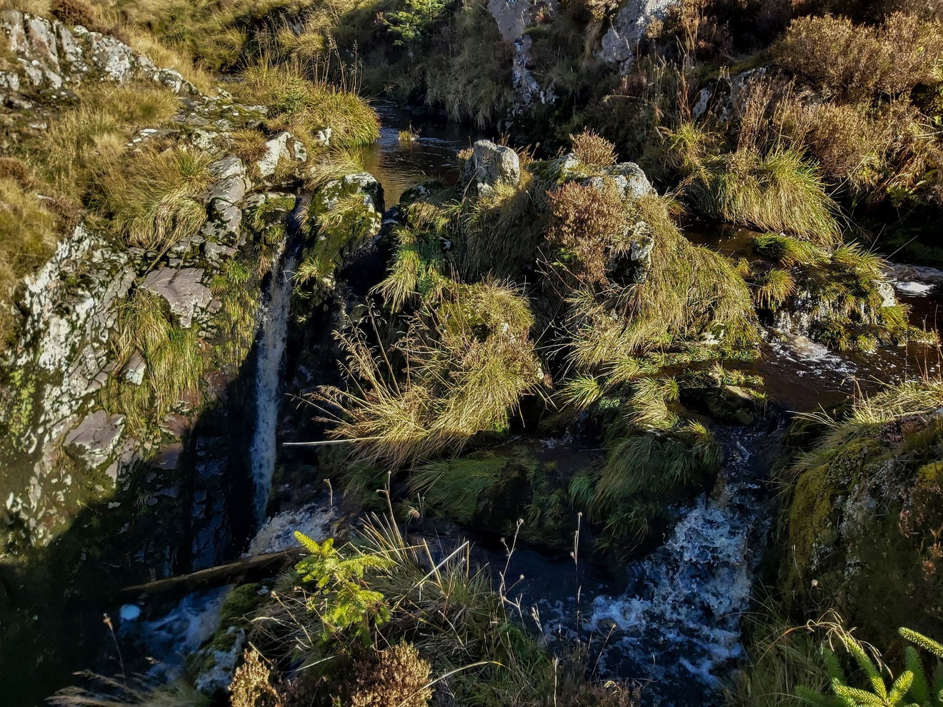 Now the next task was, how do I get across the Usway Burn to the other side to get more photos and find the second little waterfall. On heading further down the side of the fall to check out the upper cascades I was pleased to find another little footbridge.