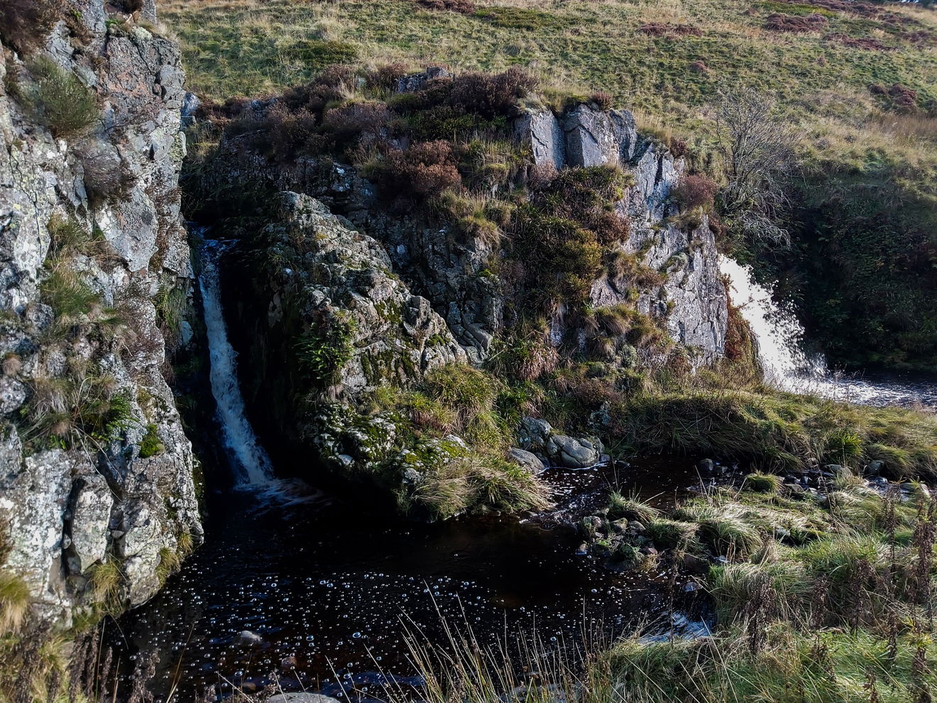 As I approached Davidson's Linn I saw this huge waterfall cascading down the side of what looks like a massive boulder, but as I had mooch around I spied there is a second hidden waterfall to its left that can only be seen if you cross over the burn.