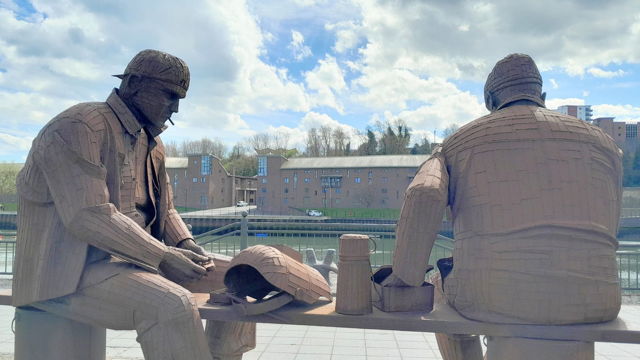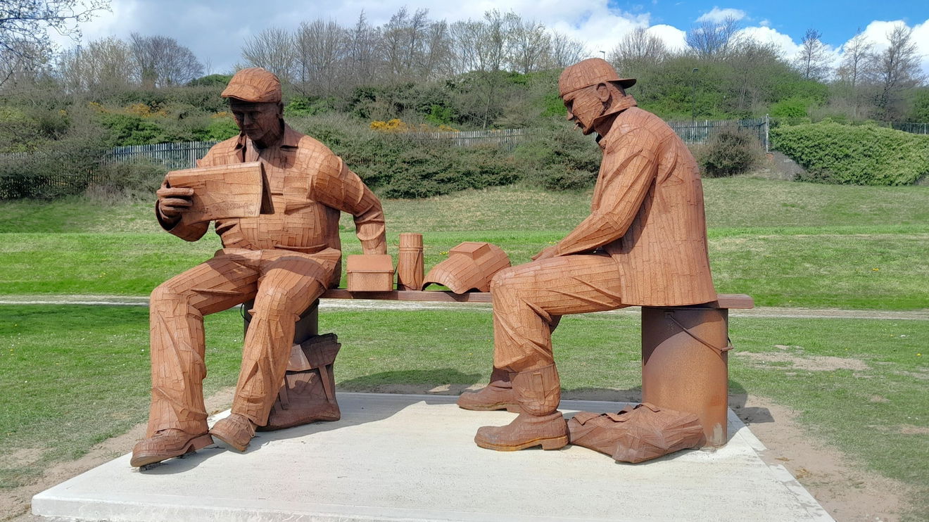 Twice life size figures by Ray Lonsdale depicting workers involved in the Wearside industries.