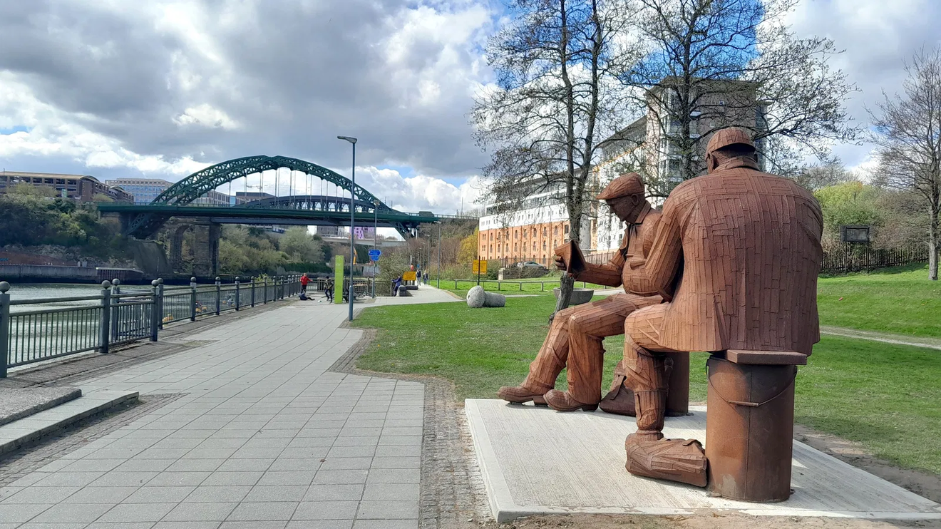 Art Sunderland Tyne And WearTwice life size Corten Steel figures by Ray Lonsdale along the River Wear.