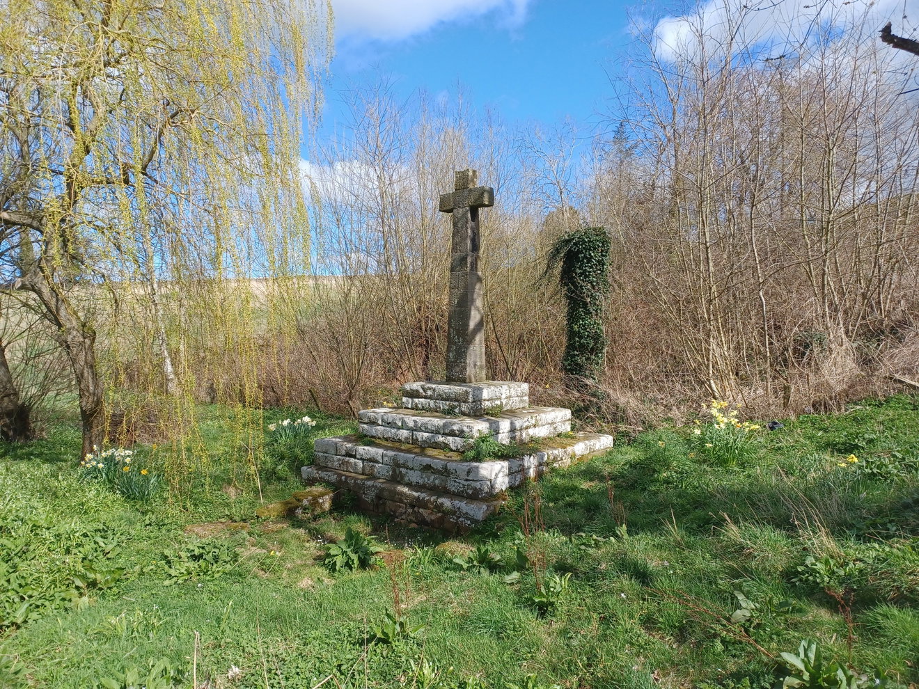 The well is in good condition and on our visit was surrounded by Snowdrops and Daffodils which gave it a lovely springtime feel. It is a little overgrown now though and only the upper structure is fully visible. There are some photos online from around 8 years ago that show the well basin and set of stone steps down to it allowing easy access to the water.