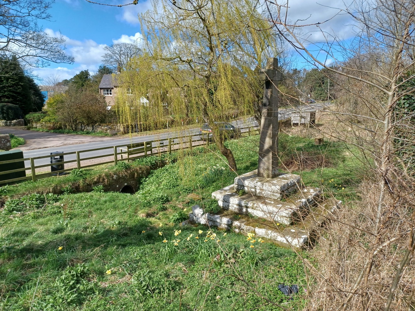It is a Grade II listed structure and is described in its Historic England listing as a well or pant dating to 1846 that was given to the village by the Reverend Proctor, formed of dressed stone, with a tapering stone cross around 10ft high sitting on a base of four square steps.