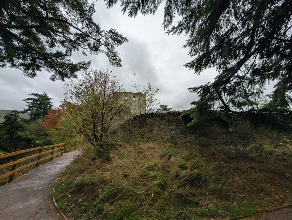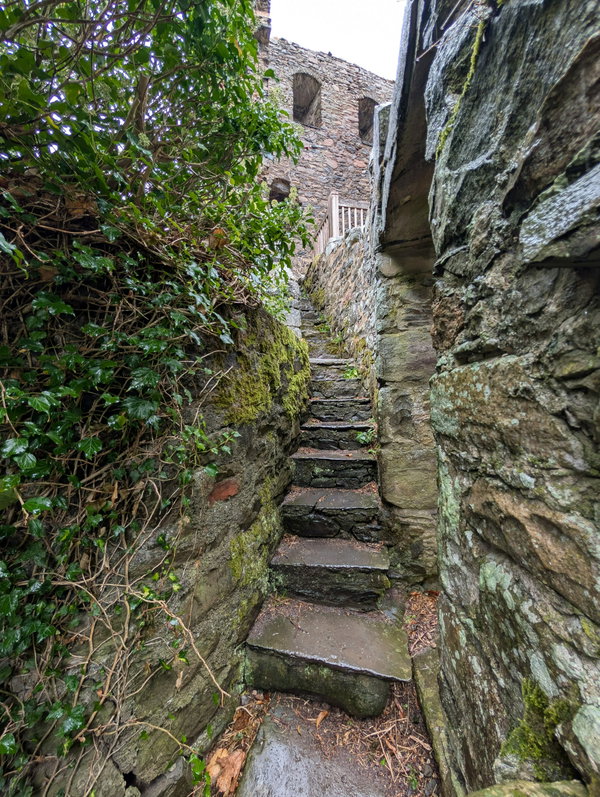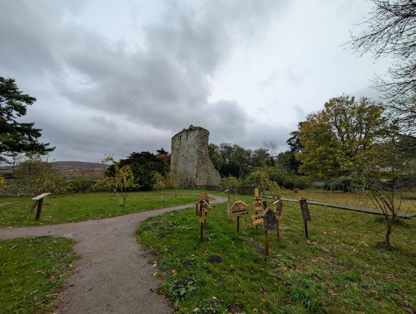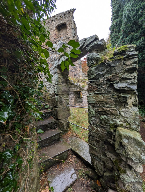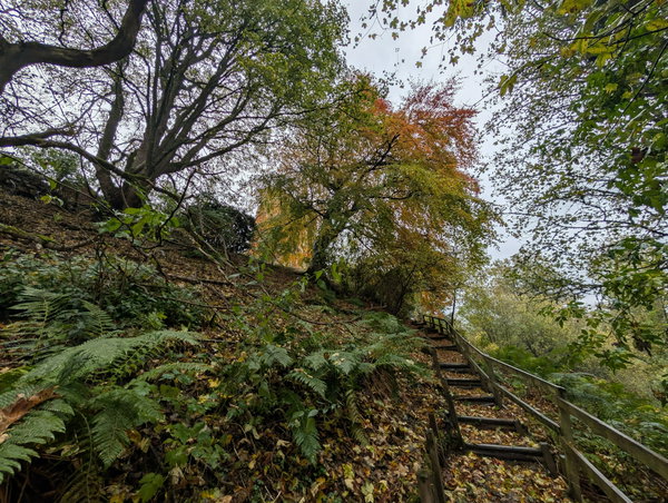 From the parking area you can either climb the steps through the steep woodlands to the castle, or take the path that contours more gently up the side of the hill. Maybe make it a short circular and go up one way and down the other.