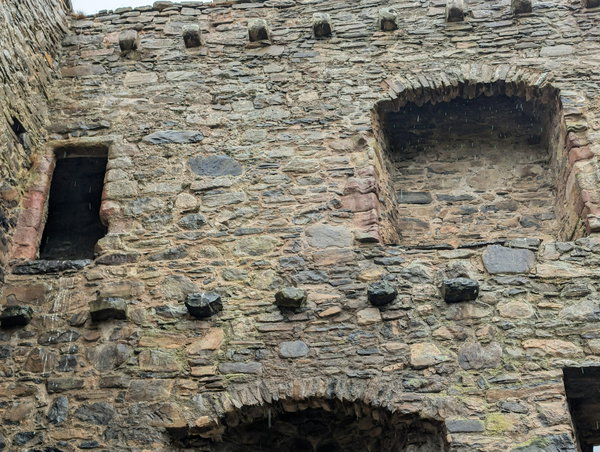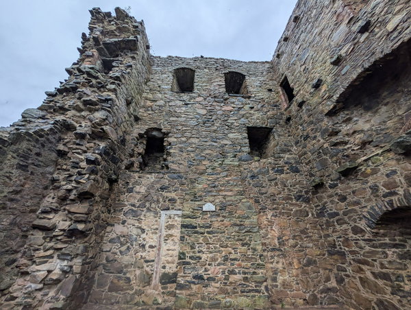 From what would have been the hall, you can see the further two floors above, the second floor being a further hall and the third floor containing the bed chambers. The corbels that supported the timber floor joists and fragments of the parapet are still visible along with the windows, fireplaces and latrines.