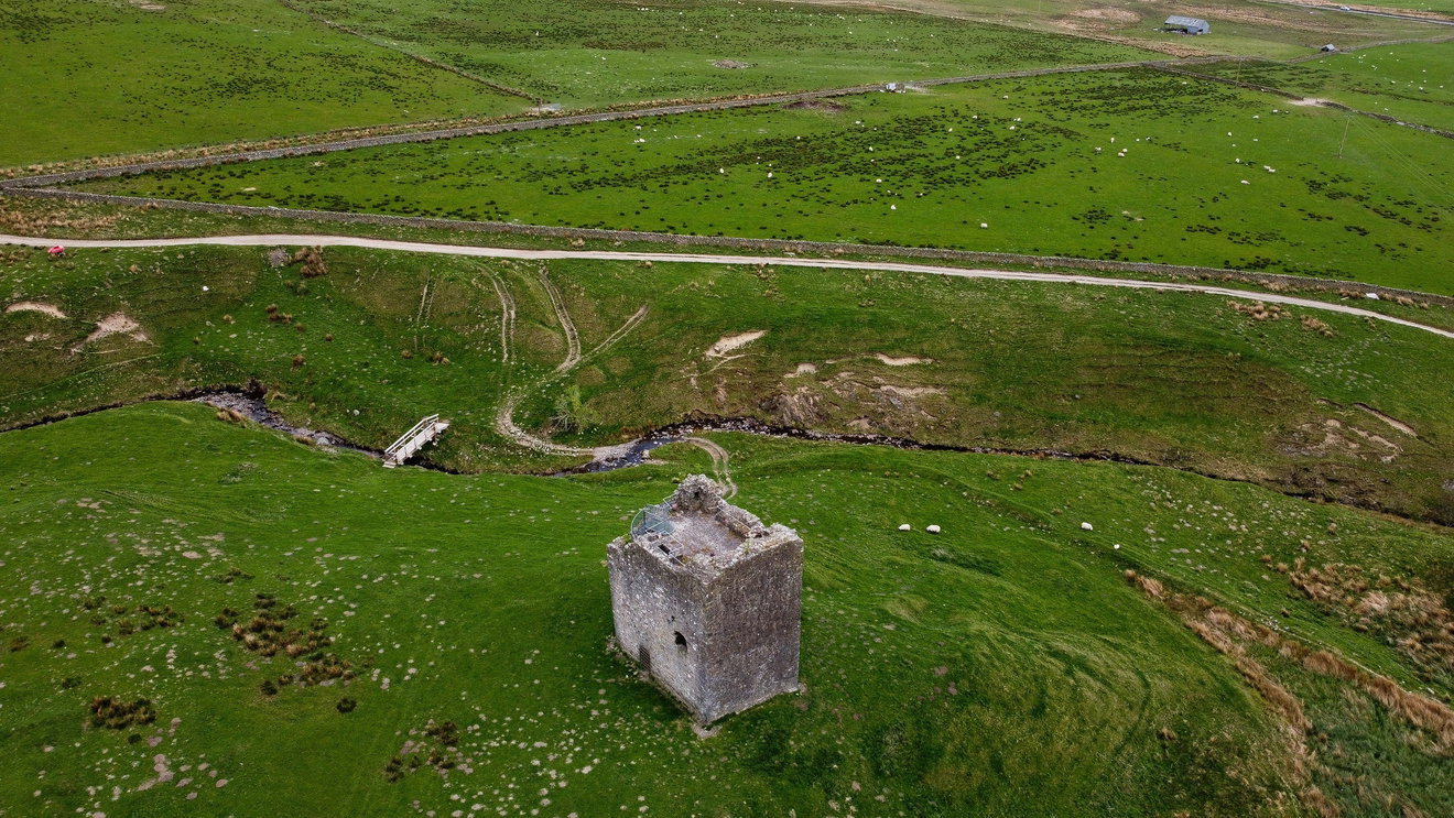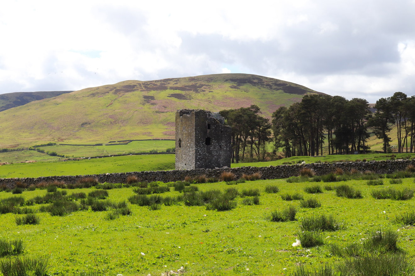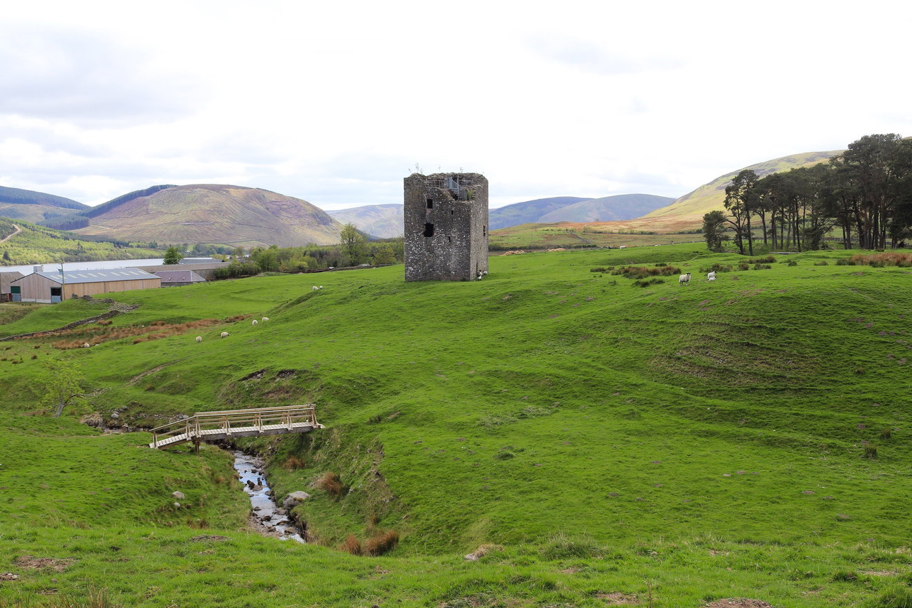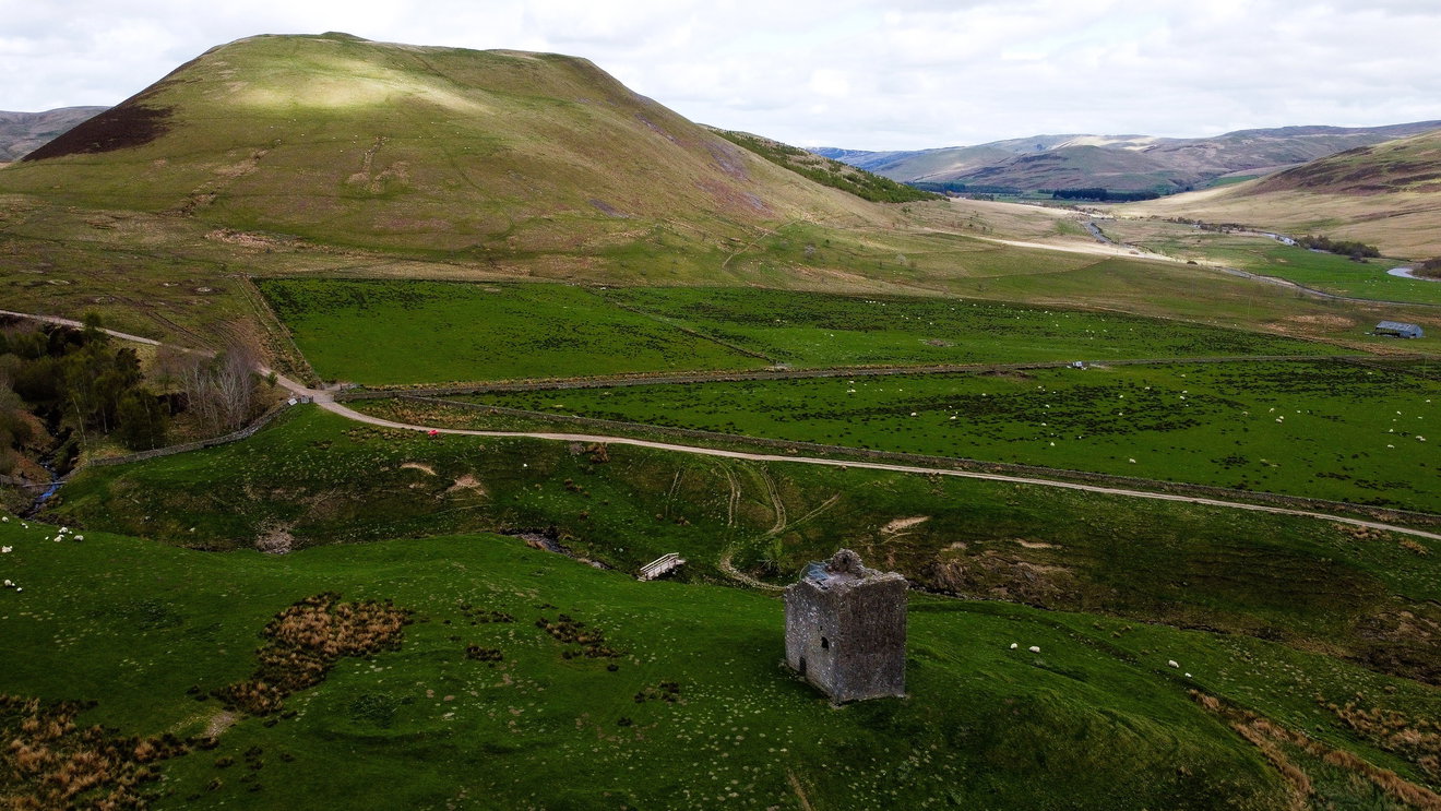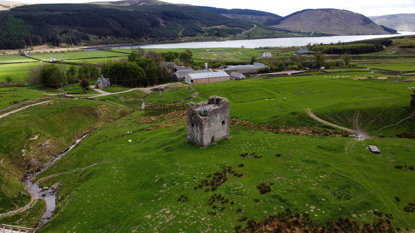 Ruined 16th-century tower house in the Scottish Borders near St. Mary's Loch, offering dramatic views and a glimpse into turbulent Border Reiver history.