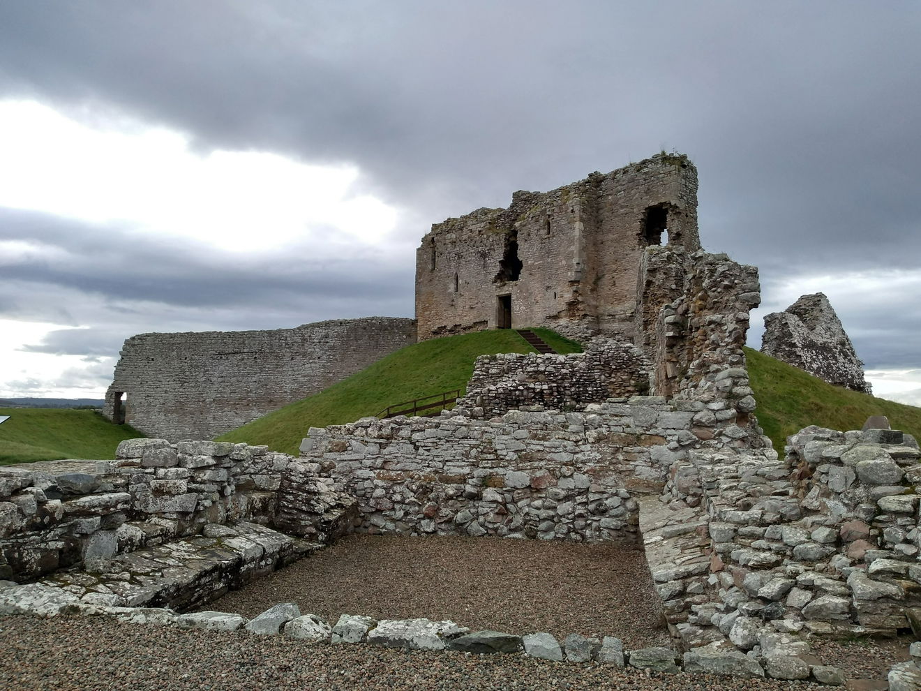 In 1140, Freskin prepared the earthwork, and built a timber motte and bailey castle. The steep sided motte was surrounded by a deep ditch, and timber buildings built on the flat top. The bailey courtyard contained the essential buildings such as a bake house, stables and living accommodation. In 1151, King David is known to have stayed here.