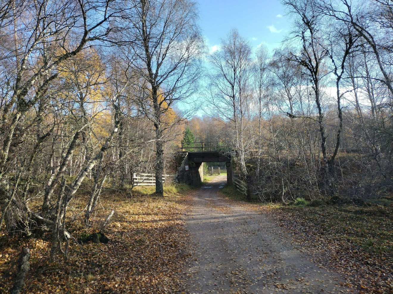 From Daldaddry parking area, head east under the railway and continue on the track turning right when it comes to a junction.