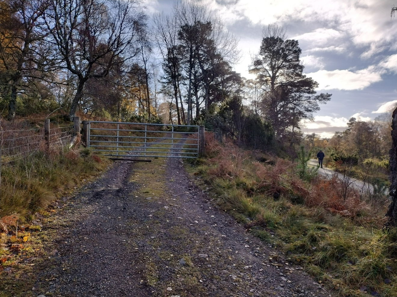 Follow the path to the end of wood, then go through the gate. Follow the ATV track to the left side of the field until you reach the gate.