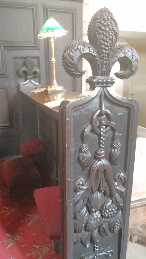 Please take a look at the woodwork too. It dates from the 18th century. The communion rail is described as having fat turned balusters, the rood screen is adorned with flowers and leaf detail of high quality and the Stall ends have passion fruit, and poppy heads in high relief.