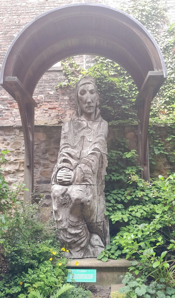 The wood sculpture was gifted in 2005 and is in the Heritage Garden along with Gaia. Mr Lawson is also known for The Journey cast in bronze 2008 and is outside the Gala Theatre, Millenium Place, Durham City, and in wood at St Marys on Holy Island.
