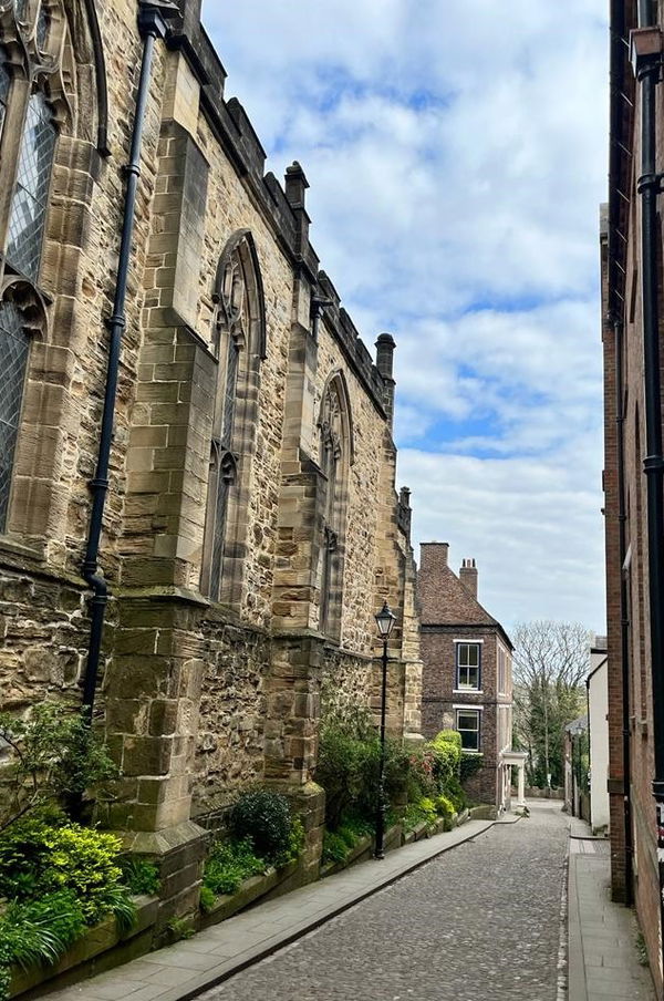 Head across Kingsgate Bridge and wander up Bow Lane, passing The Old Rectory and its Doric porch which dates early 18th century. Then you go alongside the former Church of St. Mary le Bow and get into The North Baily where the entrance to the Durham Museum and Heritage Centre is. One of the oldest parts of the church is the roof dating to the 15th Century. It mostly dates from the 1670s when Durham City was divided into parishes, and the cathedral was for monks.