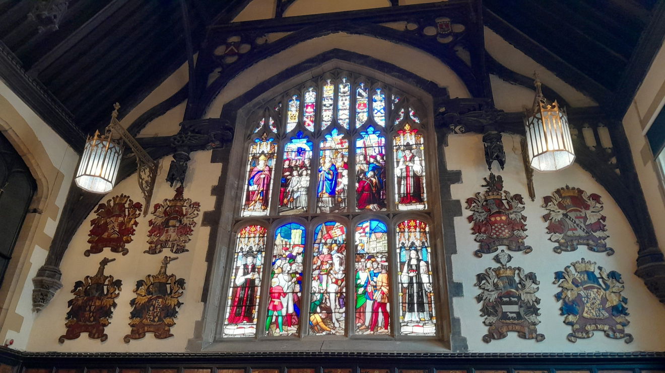 The Grand Hall is stunning. Everywhere you look there is something to behold. I would suggest taking binoculars and allowing time so that your eyes adjust to the light levels. The first thing you might do is gaze in wonder at the stained glass window. It was designed to enlighten the viewer of Durham's loyalty to the crown, Durham's cathedral and the relationship between Prince Bishops and the city.