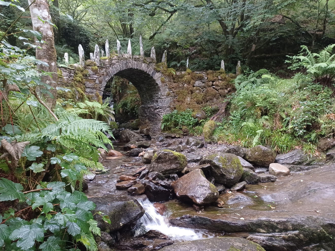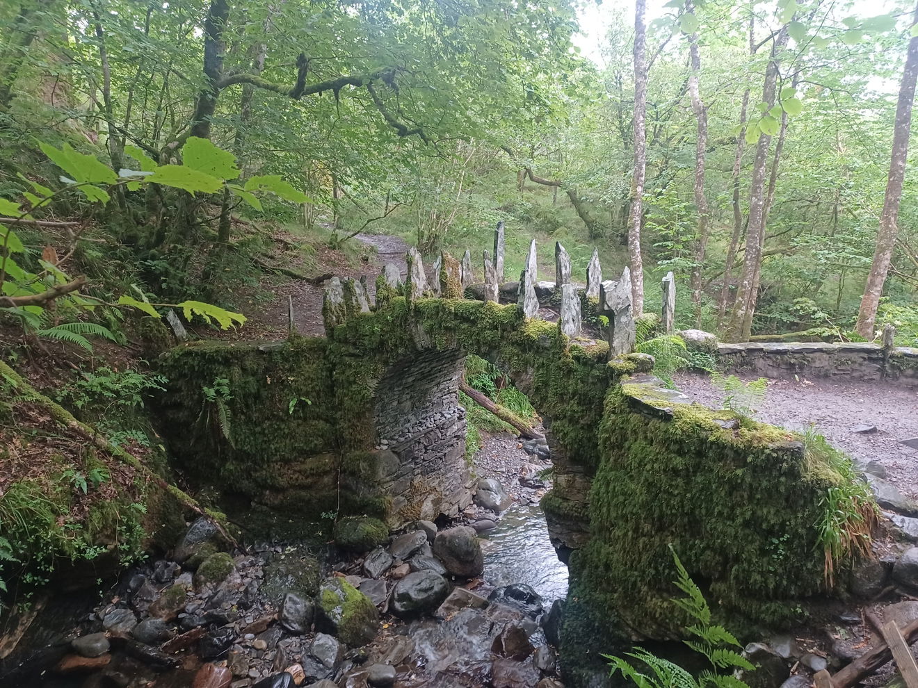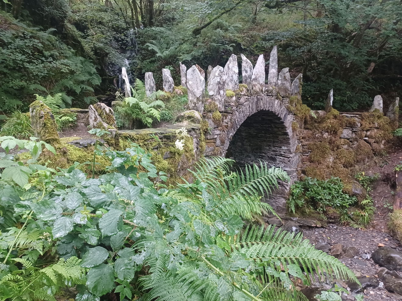 After all the excitement we continued our walk through beautiful woodland and admired views over to Beinn Sgulaird - stunning even in the rain. We made it to our destination in about 45 minutes and it's a spectacular sight as you see the bridge in all its glory. The shards of stone that stick out of the bridge look like daggers or glass, and give it this other-worldly feel. The bridge's stones are covered in moss too, which gives it quite an ethereal quality and the magic continues with the sound of rushing water from the Falls of Glen Creran nearby which are spectacular in their own right.