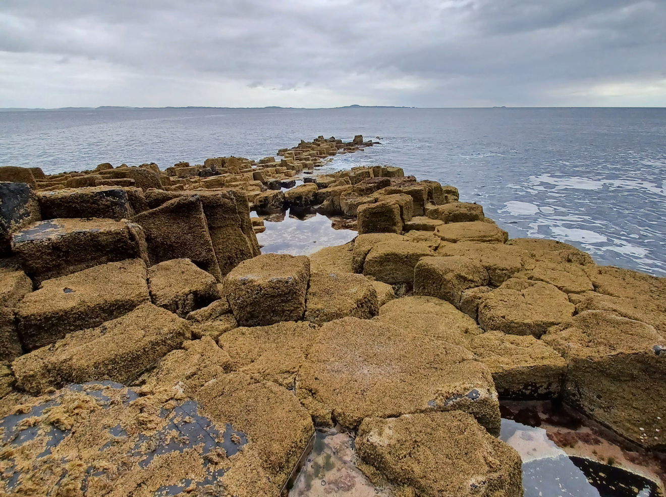 It is quite a precarious walk to the cave itself, and you have to watch your footing as you wander along the columns. It doesn't take too long to get there - maybe 10 minutes - and soon you get to see the cave in all its glory. The first thing you notice is the three dramatically different types of rock which are the tuff base, basalt columns and fractured basalt top. The tuff base is yellow-ish and made of compressed volcanic ash and dust; the basalt columns are the hexagonal parts in the middle and the fractured top is a chaotic mix of fractured columns and volcanic debris. It really is quite a sight.