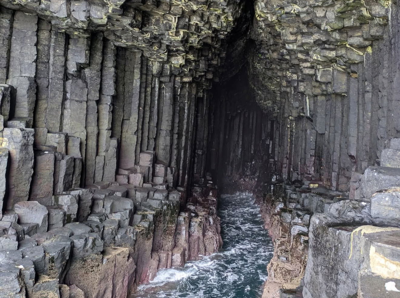 Spectacular cave on the Isle of Staffa formed by basalt pillars