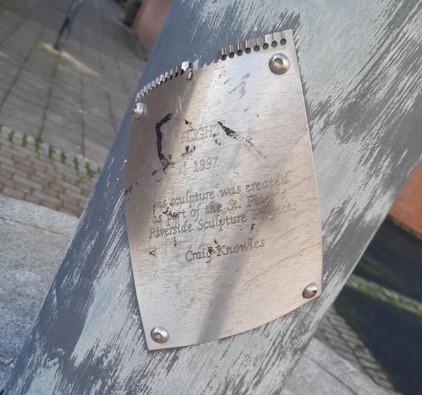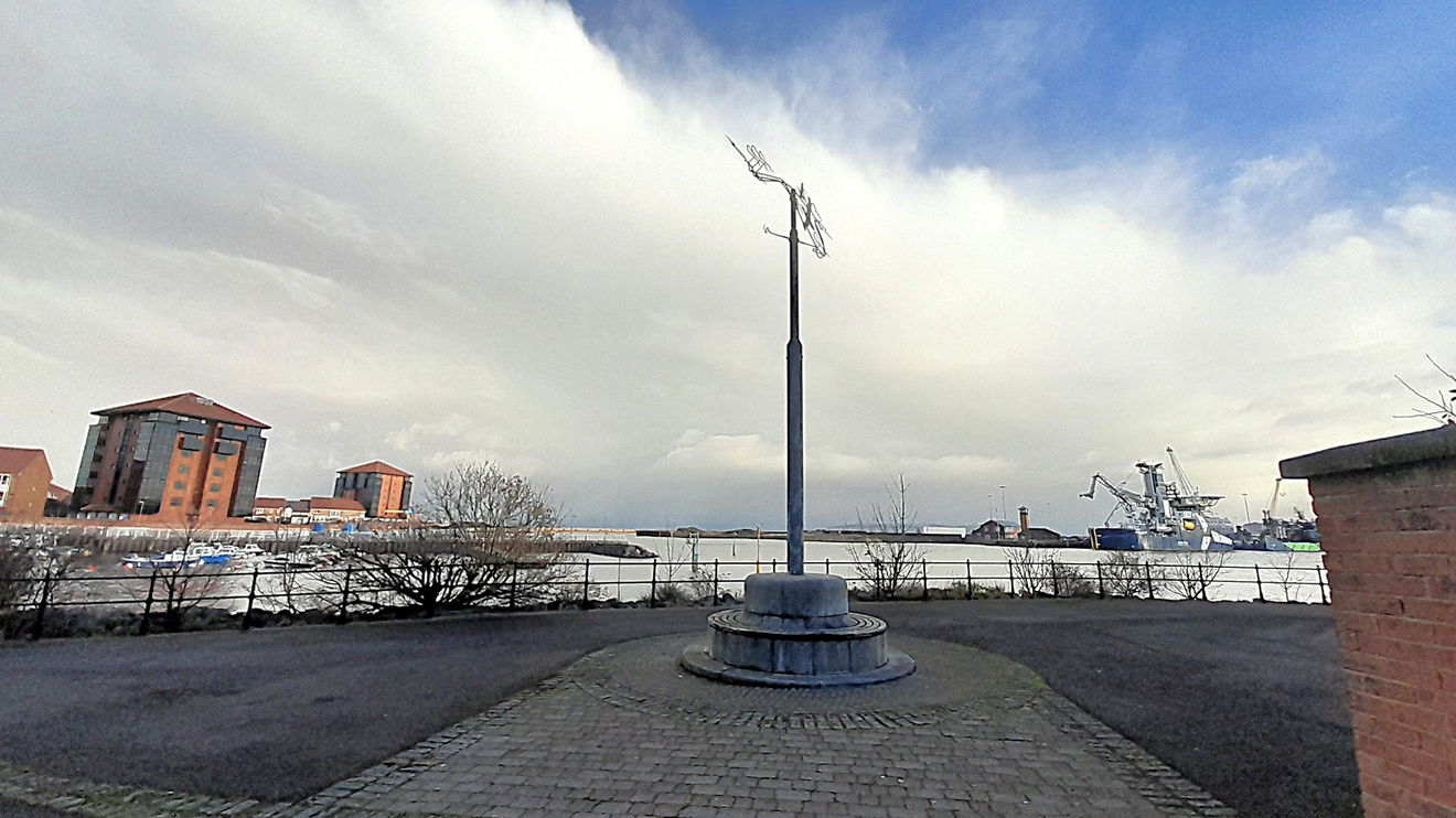 You may recognise this as the artwork of Craig Knowles, who has a few installations and collaborations in the area. He is known for Shadows in Another Light, on the St Peter's Trail, Take Flight on the other side of the Marina, and Wind And Fire in Seaham.